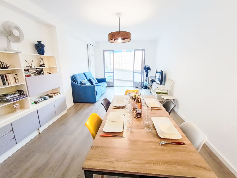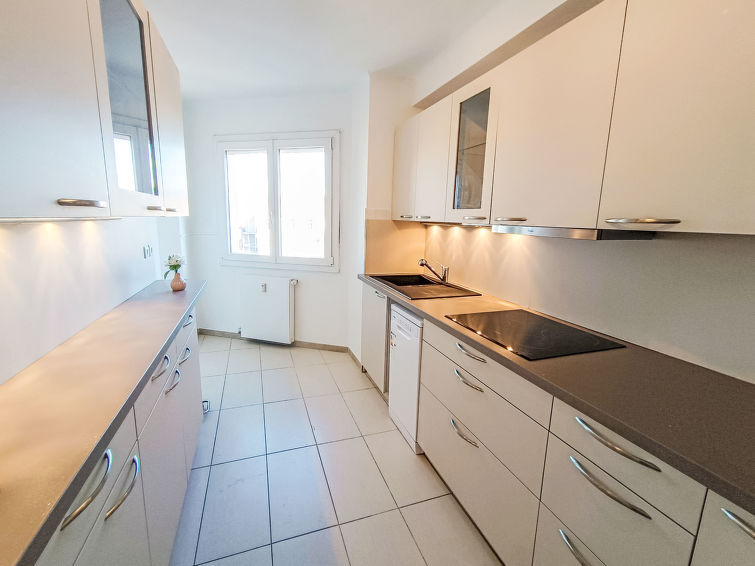 3-Zimmer-Wohnung 85 m2 im 4. Stock. Renoviert im Jahre 2023: Wohn-/Esszimmer mit TV und Flachbildschirm. Ausgang zur Loggia. 1 Zimmer mit 1 franz. Bett (1 x 140 cm, Länge 200 cm), TV, Flachbildschirm, E-Heizung und Ventilator. 1 Zimmer mit 1 Bett (160 cm, Länge 200 cm), TV, Flachbildschirm, E-Heizung und Ventilator. Grosse Küche (Backofen, Geschirrspüler, 4 Induktionskochplatten, Toaster, Wasserkocher, Mikrowelle, Tiefkühler, elektrische Kaffeemaschine, Kapseln für die Kaffeemaschine (Senseo) extra). Dusche, sep. WC. E-Heizung. Balkonmöbel, Loggia. Sicht auf das Städtchen. Zur Verfügung: Waschmaschine. Internet (WLAN, gratis). Garage, Breite 245 cm. Bitte beachten: Nichtraucher-Unterkunft. TV nur FR. Rauchmelder. Inserat einer Privatperson nach Artikel 155, IV, CGI.