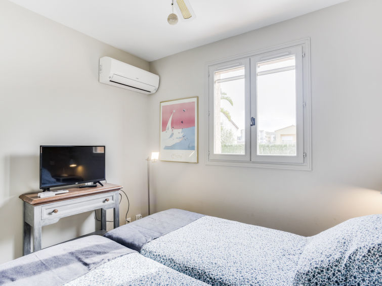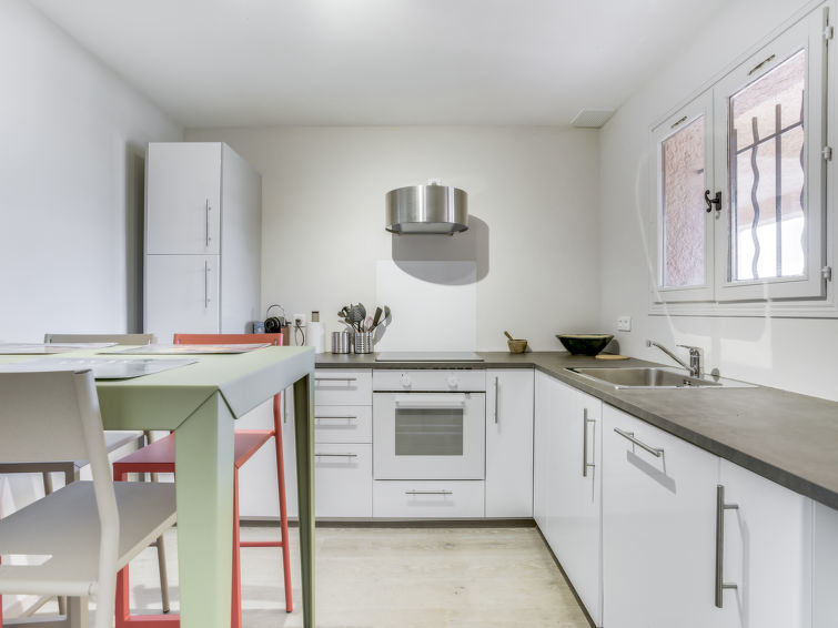 2-Zimmer-Wohnung 50 m2 im 1. Stock. Geräumig, komfortabel und modern eingerichtet: Esszimmer mit 1 Doppeldiwanbett (140 cm, Länge 190 cm), TV. Ausgang zur Terrasse, zum Gartensitzplatz. 1 Zimmer mit 2 Betten (80 cm, Länge 200 cm). Offene Küche (Backofen, Geschirrspüler, 4 Glaskeramikherd Platten, Toaster, Wasserkocher, Tiefkühler, elektrische Kaffeemaschine) mit Esstisch. Dusche/WC. Klimaanlage. Terrasse 7 m2, überdacht, Südlage, Gartensitzplatz 45 m2, Südlage. Terrassenmöbel. Zur Verfügung: Bügeleisen, Haartrockner. Internet (Wireless LAN, extra). Parkplatz Nr. 12. Bitte beachten: Nichtraucher-Unterkunft. 1 Haustier/Hund erlaubt. TV nur FR. Rauchmelder, kein Fahrstuhl. 83115003175DZ