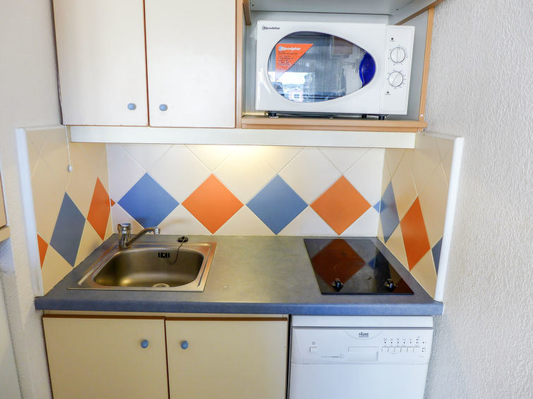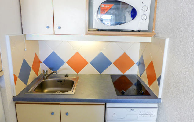 1-Zimmer-Wohnung 25 m2 im 3. Stock. Einfach und zweckmässig eingerichtet: Wohn-/Esszimmer mit 1 Doppeldiwanbett (1 x 140 cm, Länge 190 cm), TV. Ausgang zum Balkon. Eingang mit 1 x 2 Etagenbetten (80 cm, Länge 190 cm). Kochnische (Geschirrspüler, 2 Glaskeramikherd Platten, Wasserkocher, Mikrowelle, elektrische Kaffeemaschine). Bad/WC. Klimaanlage. Balkon 4 m2, Südwestlage. Balkonmöbel. Zur Verfügung: Safe. Internet (Wireless LAN, extra). Parkplatz Nr. 35 (überdacht), Höhe 200 cm, Breite 200 cm. Bitte beachten: Nichtraucher-Unterkunft, Parkplatz nur für kleine Wagen. Rauchmelder. 83115003009MX