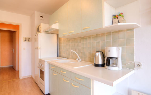 3-Zimmer-Wohnung 55 m2 im 3. Stock. Geräumig, schön eingerichtet: Esszimmer mit TV. Ausgang zum Balkon. 1 Zimmer mit 1 franz. Bett (140 cm, Länge 190 cm). 1 Zimmer mit 2 Betten (90 cm, Länge 190 cm). Küche (4 Kochplatten, Backofen, Toaster, Wasserkocher, Mikrowelle, Tiefkühler, elektrische Kaffeemaschine). Ausgang zum Balkon. Dusche, sep. WC. E-Heizung. Balkon 9 m2, Südostlage. Balkonmöbel. Zur Verfügung: Internet (Wireless LAN, extra). Bitte beachten: Nichtraucher-Unterkunft. Rauchmelder. 83115003114AK
