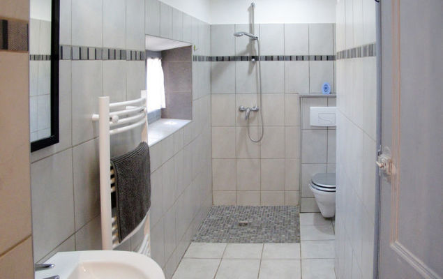 2-Zimmer-Hausteil, 2 Etagen, ca. 90 m². Erdgeschoss: Wohnraum mit Sitzgruppe, Essplatz, Kochnische (2 Platten, Mikrowelle, Kühl-/Gefrierkombination, Kaffeemaschine, Wasserkocher, Toaster). Dusche/WC. Obergeschoss: Großes Schlafzimmer mit franz. Bett (1,60 m breit). Bad/WC.