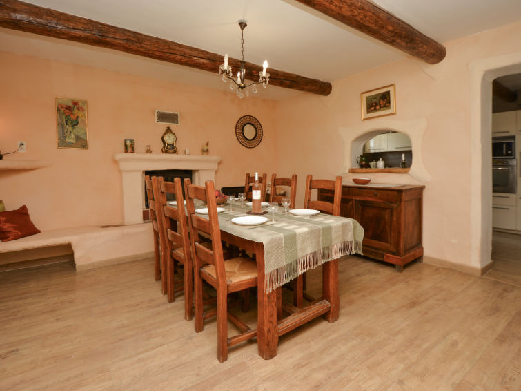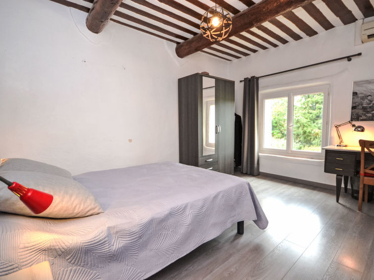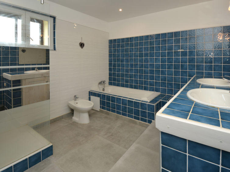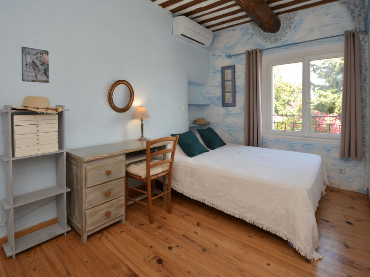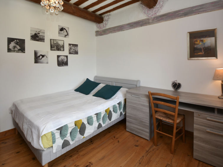7-Zimmer-Reihenhaus 200 m2 auf 2 Stockwerken. Offenes Esszimmer 20 m2. Salon 25 m2 mit TV (Flachbildschirm). Ausgang zur Terrasse. 1 grosses Zimmer 40 m2, Fenster zum Hof mit 2 Betten (90 cm, Länge 200 cm). Küche (Backofen, Geschirrspüler, 4 Induktionskochplatten, Mikrowelle, Tiefkühler, elektrische Kaffeemaschine) mit Esstisch. Dusche/WC. Klimaanlage. Obergeschoss: 1 Zimmer mit 1 franz. Bett (160 cm, Länge 200 cm). 1 Zimmer mit 1 franz. Bett (140 cm, Länge 200 cm). 1 Zimmer mit 1 franz. Bett (140 cm). 1 Zimmer mit 1 franz. Bett (140 cm). Bad/Dusche, Bidet, sep. WC, Doppelwaschbecken. Heizung, Klimaanlage. Terrasse 25 m2, überdacht. Terrassenmöbel, Liegestühle (8). Sicht auf das Tal und den Garten. Zur Verfügung: Waschmaschine, Kinderhochstuhl, Babybett bis 2 Jahre. Internet (WLAN, gratis). Parkplatz. Bitte beachten: Maximal 1 Haustier/Hund erlaubt. Rauchmelder.