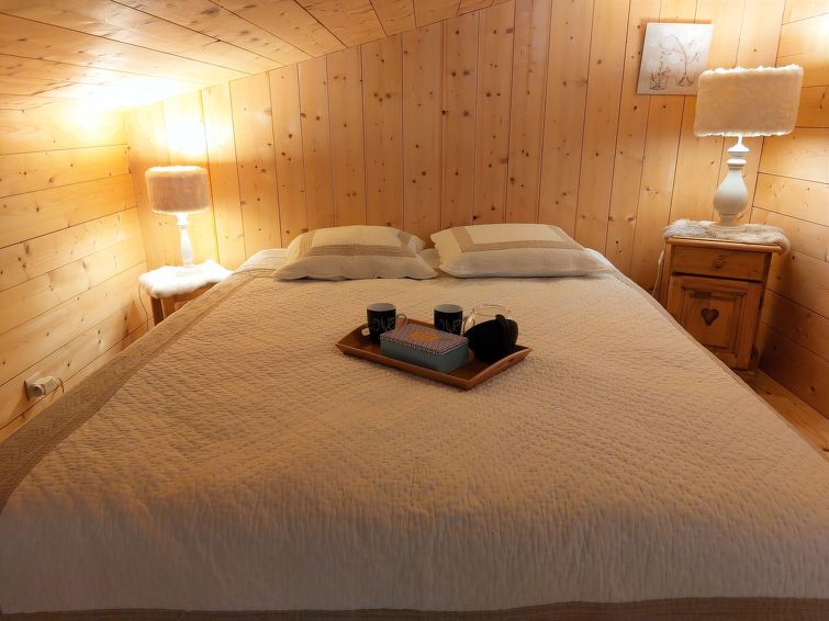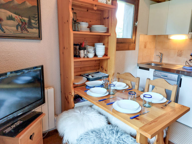 "La Jacquerie", 1-Zimmer-Studio 32 m2 im 1. Stock. Objekt geeignet für 2 Erwachsene + 2 Kinder. Wohn-/Esszimmer mit TV. Ausgang zum Balkon. Abgeschrägte, offene Galerie mit 1 franz. Bett (160 cm, Länge 200 cm). Kabine mit 1 x 2 Etagenbetten (80 cm, Länge 190 cm), 1 Schlafmöglichkeit (80 cm, Länge 190 cm). Offene Küche (2 Kochplatten, Geschirrspüler, Toaster, Wasserkocher, elektrische Kaffeemaschine, Kapseln für die Kaffeemaschine (Senseo) extra). Bad, sep. WC. E-Heizung. Kleiner Balkon 5 m2, Ostlage. Parkplatz Nr. B20 (überdacht). Bitte beachten: TV nur FR. Rauchmelder. Anstelle eines abgeschlossenen Schlafzimmers befinden sich manche Schlafplätze in einem offenen Bereich (Galerie, Nische etc.). Inserat einer Privatperson nach Artikel 155, IV, CGI.