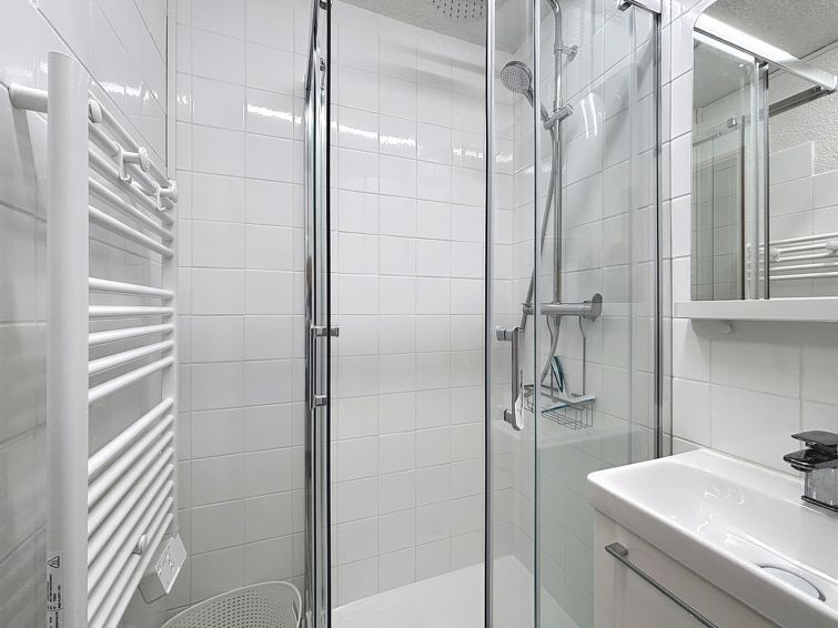 1-Zimmer-Studio 17 m2 im 1. Stock. Esszimmer mit 1 Klappbett (140 cm, Länge 190 cm), TV (Flachbildschirm), E-Heizung. Ausgang zum Balkon, Richtung Südwesten. Eingang mit 1 x 2 Etagenbetten (80 cm, Länge 190 cm). Kochnische (2 Kochplatten, Wasserkocher, Mikrowelle, elektrische Kaffeemaschine, Kapseln für die Kaffeemaschine (Senseo)). Dusche/WC. E-Heizung, Boiler (100 Liter). Kleiner Balkon, Südwestlage. Balkonmöbel. Sicht auf die Berge. Bitte beachten: Nichtraucher-Unterkunft. Rauchmelder. Anstelle eines abgeschlossenen Schlafzimmers befinden sich manche Schlafplätze in einem offenen Bereich (Galerie, Nische etc.). Bettwäsche, Handtücher, Endreinigung und alle Energiekosten sind inkludiert. Inserat einer Privatperson nach Artikel 155, IV, CGI.