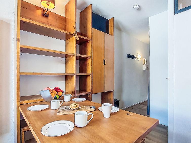 1-Zimmer-Studio 21 m2 im 6. Stock, Nordlage. Teilweise renoviert im Jahre 2025: Wohn-/Esszimmer mit 1 Ausziehbett (2 Pers. 2 x 80 cm, Länge 190 cm), Esstisch, TV, Flachbildschirm und E-Heizung. Ausgang zum Balkon, Richtung Norden. Kabine mit 1 x 2 Etagenbetten (80 cm, Länge 190 cm). Eingang mit Küchenblock. Kochnische (2 Kochplatten, Geschirrspüler, Toaster, Wasserkocher, elektrische Kaffeemaschine). Bad, sep. WC. Parkettboden. Kleiner Balkon 3 m2. Sicht auf die Berge, das Tal, die Skipiste und die Ortschaft. Zur Verfügung: Internet (WLAN, extra). Bitte beachten: Nichtraucher-Unterkunft. Rauchmelder. Inserat einer Privatperson nach Artikel 155, IV, CGI.