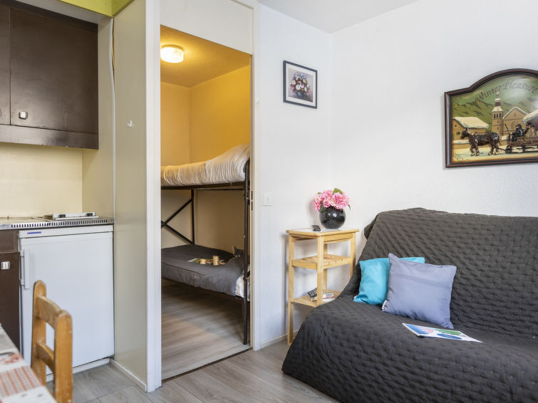 "Roche Blanche 97", 1-Zimmer-Wohnung 18 m2 im 1. Stock, Nordlage. Wohn-/Esszimmer mit 1 Doppeldiwanbett (140 cm, Länge 190 cm), TV und E-Heizung. Eingang mit 1 x 2 Etagenbetten (80 cm, Länge 190 cm). Kochnische (2 Kochplatten, Wasserkocher, Mikrowelle, elektrische Kaffeemaschine). Bad/WC. Zur Verfügung: Internet (Wireless LAN, extra). Bitte beachten: Maximal 1 Haustier/Hund erlaubt. Rauchmelder. Kein Balkon. 73257001731MX